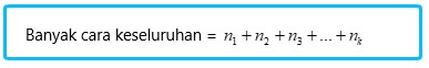 Jika Quipperian menemukan dua kejadian atau lebih yang tidak bisa berlangsung secara bersamaan, banyaknya cara keseluruhan yang harus Quipperian gunakan adalah sebagai berikut.