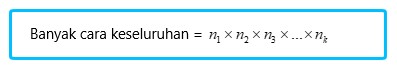 Suatu kejadian yang berlangsung selama k kali dan masing-masing kejadian dilambangkan sebagai n1, n2, n3, n4, …, nk akan berlaku persamaan berikut.