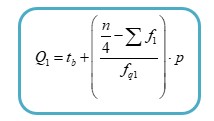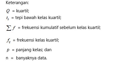 Untuk data berkelompok, kuartil tengahnya dirumuskan sebagai berikut.