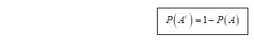 Peluang komplemen A dinotasikan sebagai P(Ac). Secara matematis, peluang komplemen dirumuskan sebagai berikut.