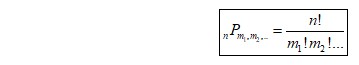 c. Permutasi dari n unsur dengan beberapa objek yang sama, misalnya m1, m2, dan seterusnya dirumuskan sebagai berikut.