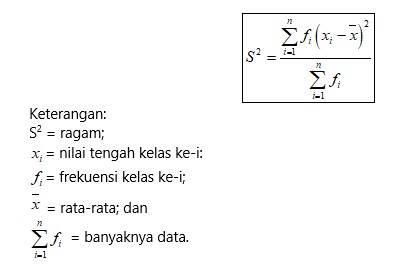 b. Ragam data berkelompok dirumuskan sebagai berikut.