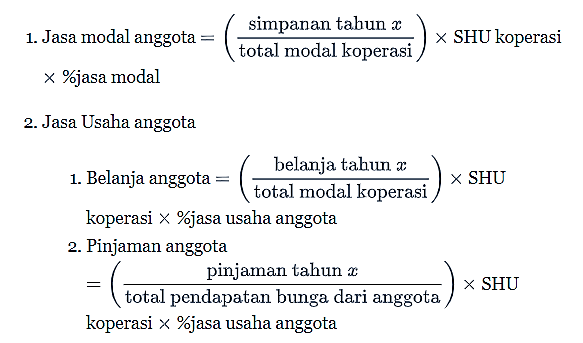 SHU anggota = jasa modal anggota + jasa usaha anggota