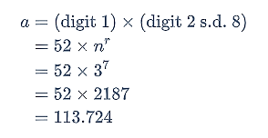 Dengan bantuan rumus permutasi berulang P = nr, nilai a dapat ditentukan sebagai berikut.