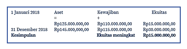 Jadi, perubahan ekuitas pemegang saham perusahaan A untuk tahun 2013 adalah ekuitas meningkat sebesar Rp15.000.000.