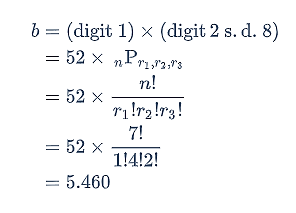 Dengan bantuan rumus permutasi unsur yang sama, nilai b dapat ditentukan sebagai berikut.