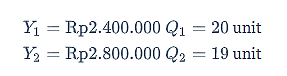 Pada saat pendapatan Rp2,4 juta per bulan, jumlah barang yang dibeli sebanyak 20 unit per bulan. Kemudian, pada saat pendapatan meningkat menjadi Rp2,8 juta per bulan, jumlah barang yang dibeli berkurang menjadi 19 unit per bulan. Informasi tersebut menunjukkan bahwa barang yang dimaksud merupakan jenis barang…