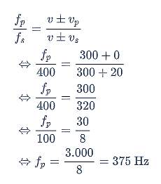 Orang tersebut akan mendengar sirine dengan frekuensi 375 Hz, sedangkan besar frekuensi sirinenya 400 Hz (fp < fs).