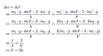 Jadi, salah satu cara yang dapat dilakukan agar sistem tetap setimbang adalah dengan cara mengubah konstanta pegas menjadi dua kali semula dan pertambahan panjang pegas dijaga tetap.