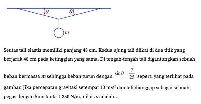 - Konstanta pegas menjadi 0,5 kali semula dan pertambahan panjang pegas menjadi 2 kali semula.