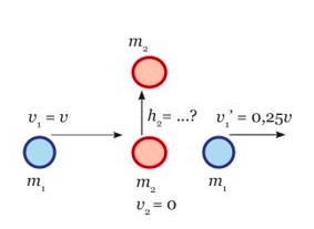 Sebuah benda bermassa m1 bergerak dengan kecepatan v menumbuk benda kedua bermassa m2 yang diam. Akibatnya, benda pertama bergerak dengan kecepatan 0,25v setelah tumbukan dan benda kedua bergerak ke atas dengan ketinggian h. Nilai h maksimal adalah…