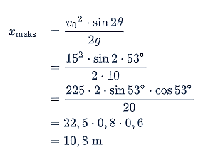 Saat pertandingan final bulu tangkis tunggal putra pada Asian Games 2018, Jojo harus melawan Chou. Jojo memukul kok dengan kecepatan 15 m/s dan sudut elevasinya 53o. Jarak Chou dari Jojo agar bisa menerima umpan kok tersebut adalah…