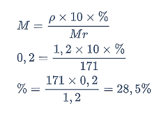 Jika massa jenis dan massa molar Ba(OH)2 berturut-turut adalah 1,2 g/mL dan 171 g/mol, kadar Ba(OH)2 dalam larutan adalah…