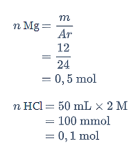 Oleh karena perbandingan mol HCl paling kecil, maka HCl menjadi pereaksi pembatas.