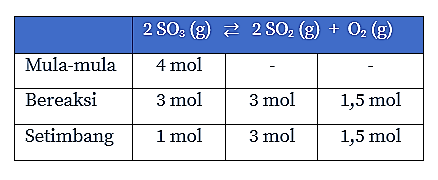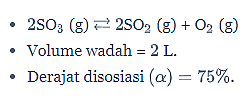 Jika SO3 terdisosiasi 75%, harga tetapan kesetimbangan untuk reaksi penguraian tersebut adalah…