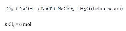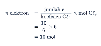 Jika terdapat 6 mol Cl2 yang bereaksi, maka jumlah mol elektron yang terlibat adalah…