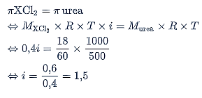 Larutan urea dibuat dengan melarutkan 18 gram urea (Mr = 60) ke dalam air hingga volumenya menjadi 500 mL. Jika larutan urea tersebut isotonik dengan larutan elekrolit XCl2 0,4 M, harga derajat disosiasi dari XCl2 adalah…