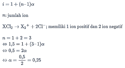 Jadi, derajat disosiasi (α) XCl2 adalah 0,25.