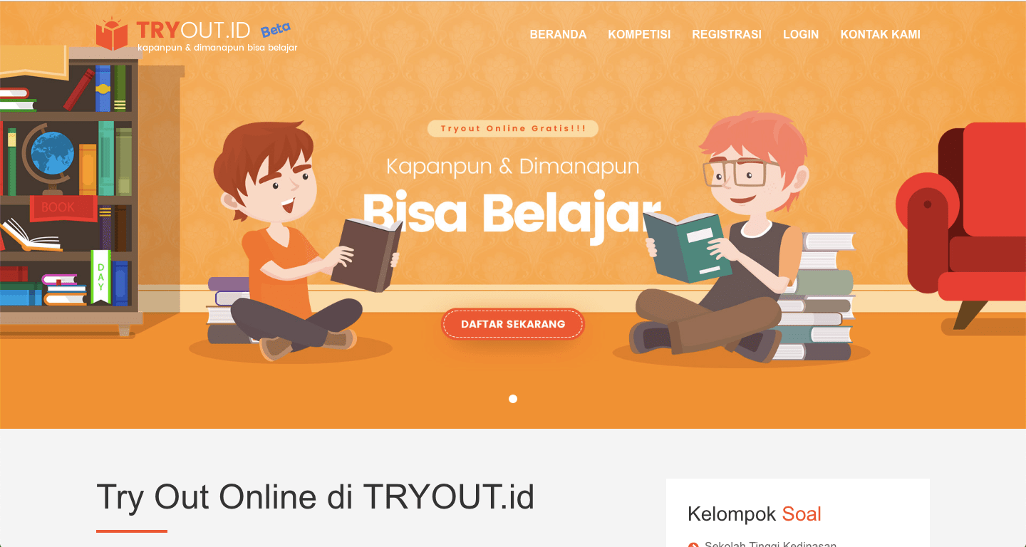 Di situs ini, banyak sekali ragam soal yang ditawarkan. Mulai dari soal sainstek, soshum, TKD, dan lain sebagainya. Hasil tryout di situs ini pun akan keluar dan langsung diperingkatkan dalam skala nasional.