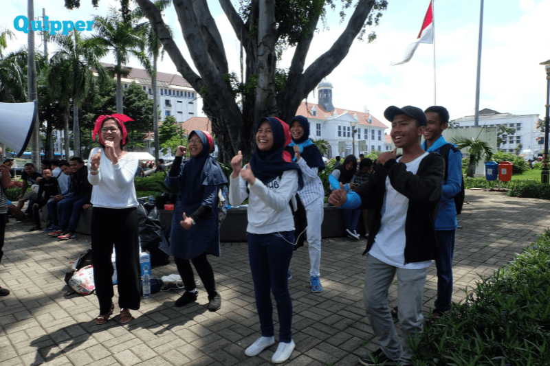 Mulai dari memecahkan teka teki, mempelajari isi museum, menjawab quiz sampai foto-foto dengan pose kocak, semuanya sukses dilakukan oleh para Quipper Squad. Saking hebohnya, mereka berhasil mengisi area kota tua penuh dengan canda tawa. Pokoknya top banget deh performa para Quipper Squad di hari itu.