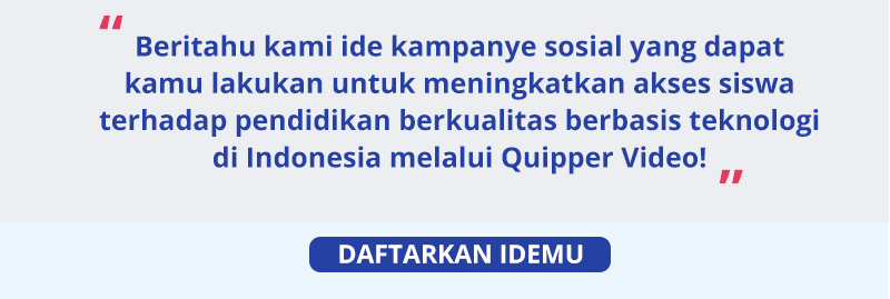 Oleh karena itu, melalui Quipper Community Champions, Quipper ingin mengajak kalian para inovator muda untuk berlomba membantu menyebarkan pendidikan berkualitas ke seluruh Indonesia melalui ide-ide kreatif kalian.